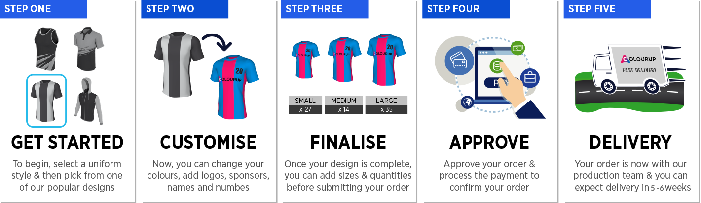 Once your design is complete you can proceed to ordering your uniforms, or you can email us for design assistance. If you are not sure about the design, then don’t worry; we have in-house graphic designers that can assist you in creating something that meets your needs. We promise fast turnarounds for all designs along with stunning artworks as well.