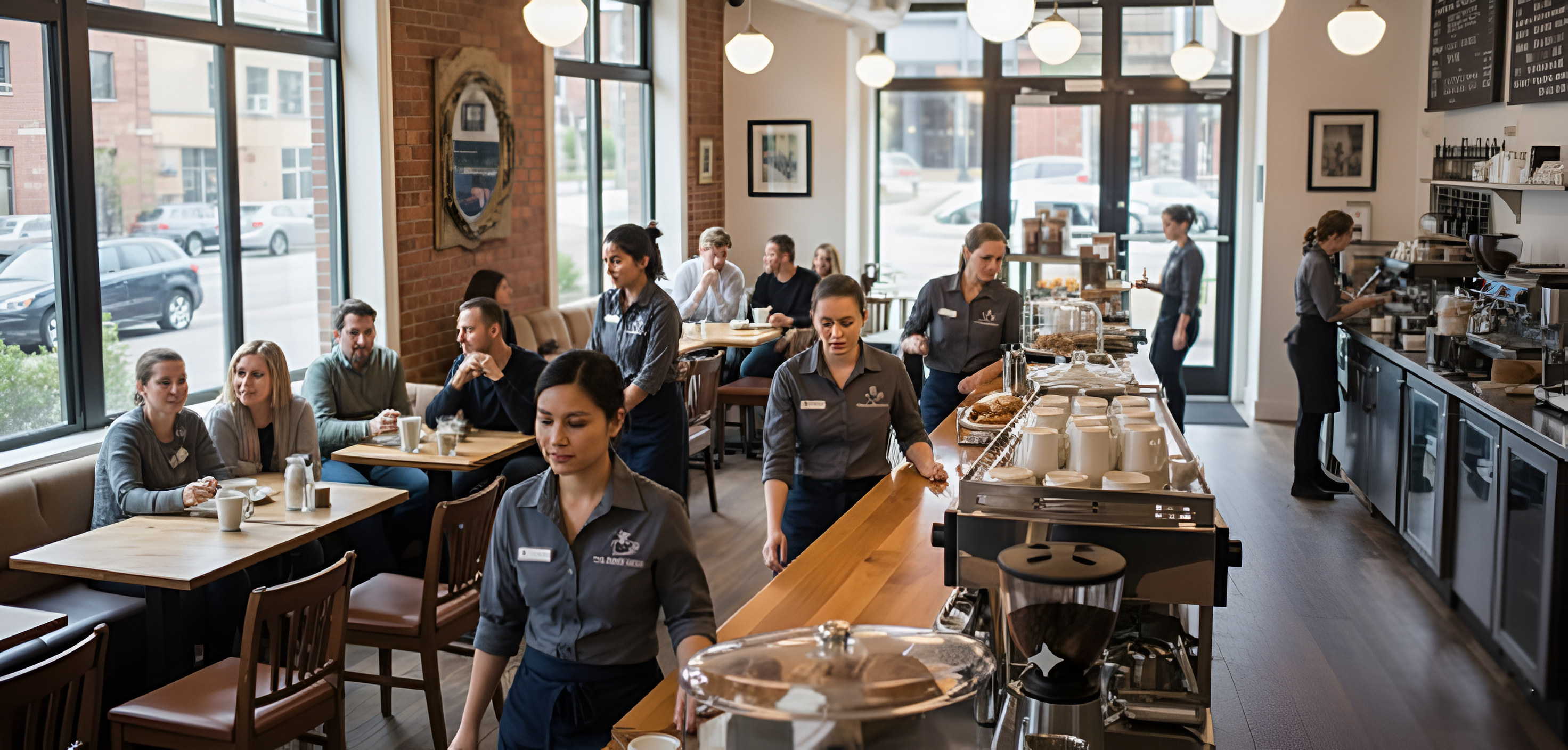 For example, a café with staff in personalised branded shirts looks more polished than one without. That same principle applies across industries — from trades to corporate offices.